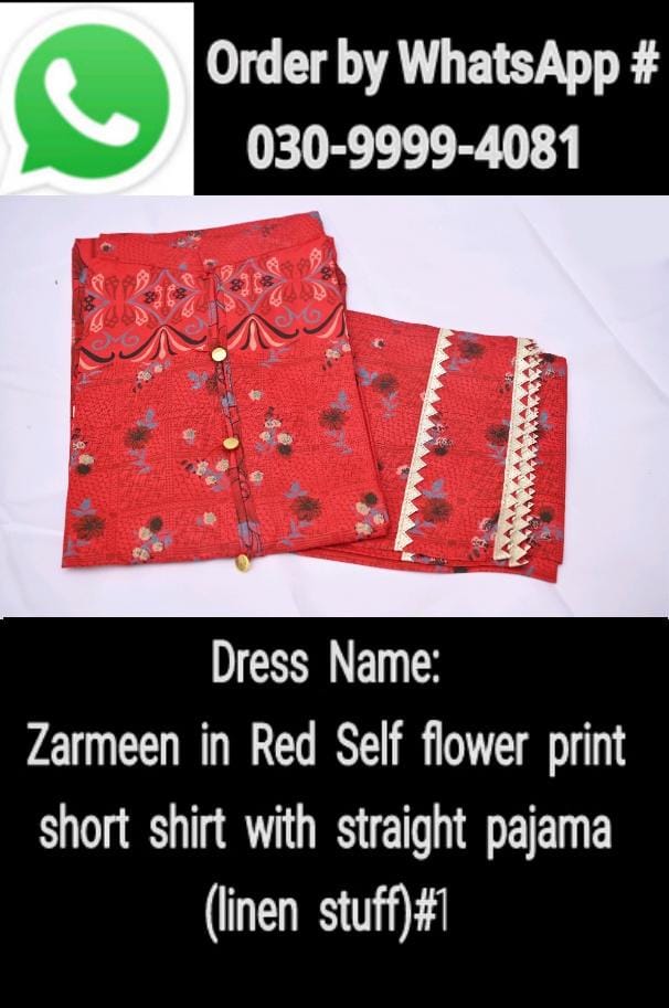 Zarmeen on red self flower print short shirt with straight pajama (linen stuff)#1
